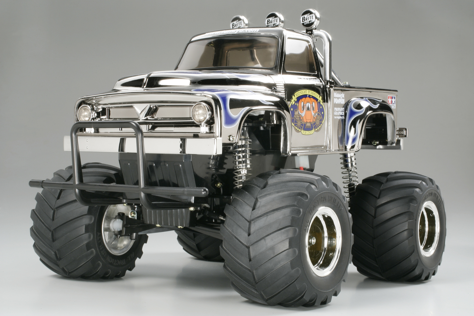 Since its first release, Midnight Pumpkin has been a Tamiya favorite thanks to its classic 1950's pick-up truck style combined with oversized tires for stomping performance on the track. This updated stylish version of Midnight Pumpkin features all the popular characteristics of the original, combined with a black-metallic body and silver-plated wheels for a more eye catching appearance. The body, and parts H and J are plated using an advanced vacuum plating technique. Other parts remain the same as original kit, with new packaging used to easily distinguish this limited item from original kit version. A great product for Midnight Pumpkin fans or R/C drivers wanting a good looking and fun product. You will need to add a battery, charger, radio equipment and a steering servo to complete the build of this kit truck. Talk to our friendly staff about a custom setup.