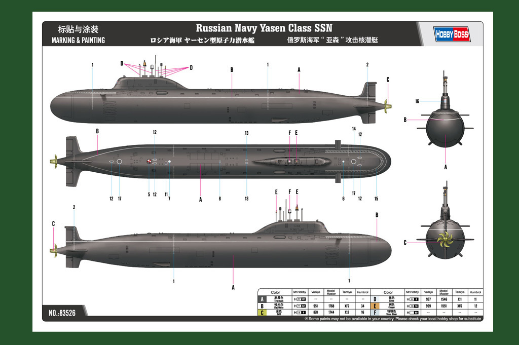 HobbyBoss 1/350 Russian Navy Yasen Class SSN Plastic Model Kit [83526]