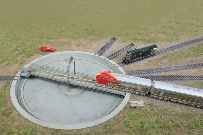 Sure to be the focal point of any HO Scale engine terminal, this Walthers Cornerstone 110' Motorized Turntable is where steam locomotives, and later diesels, were turned around at the end of their runs. Normally serving a roundhouse, turntables were placed adjoining the roundhouse, servicing tracks and at major terminals, backshops. This 110' turntable is large enough to turn larger locomotives such as a 4-8-4 Northerns and 2-10-2s. It'll look great at your locomotive terminal, at junctions and anywhere else medium-sized steam locomotives must be turned. On your layout use the 110' Motorized Turntable as the heart of your servicing facility.