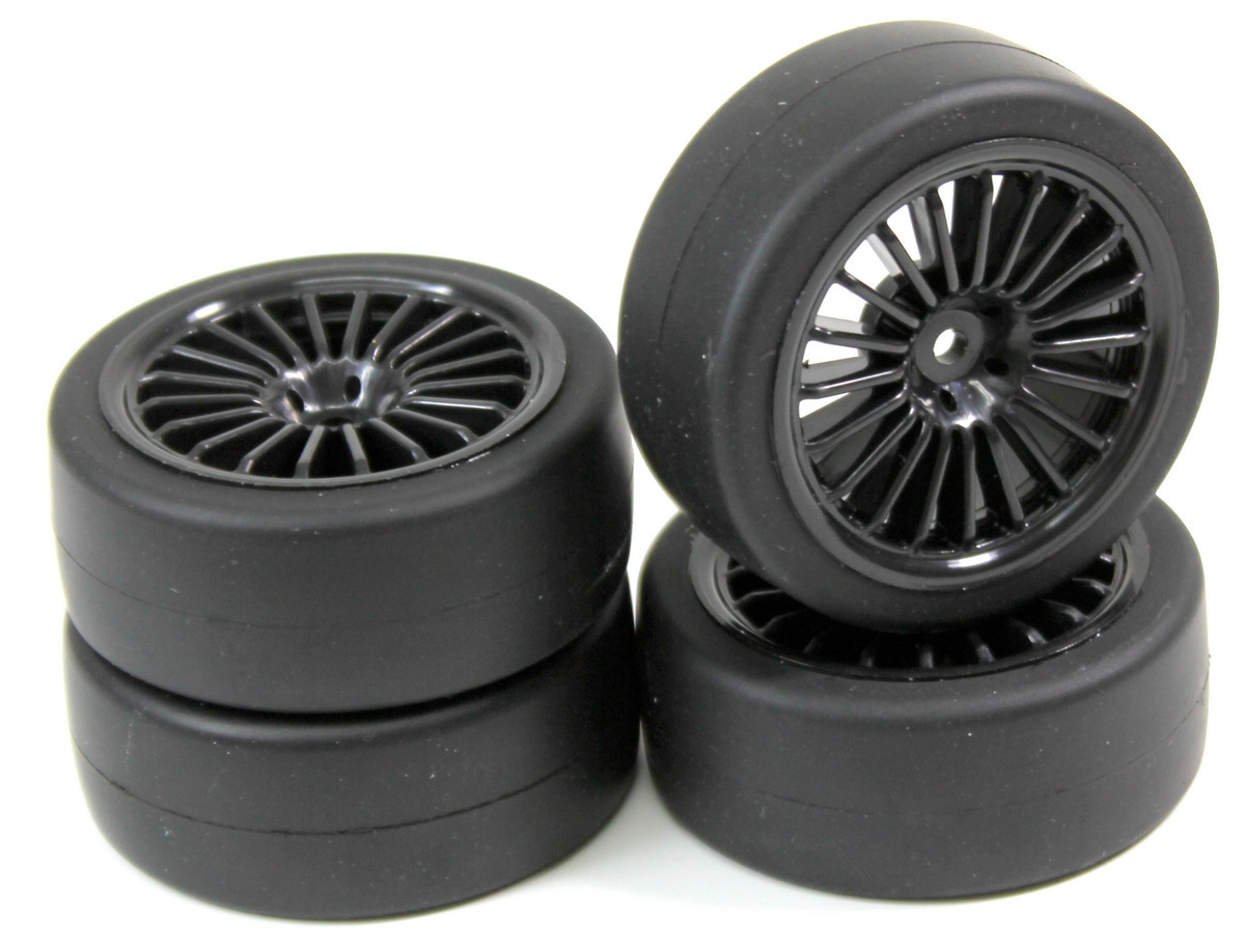 Absima Rim and tyres set 20 Spoke black w/Slick tyres 4pc