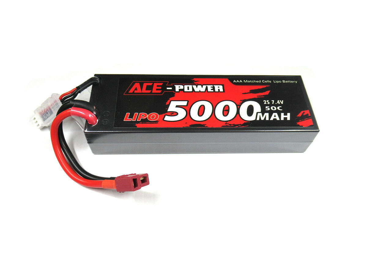 Ace Power 7.4v 5000mAh 50C 2S Lipo Battery w/Deans T-Style plug Ace Power AAA matched cells to ensure quality. One of the most popular LiPo batteries for use in just about any car, crawler, truck or truggy. Dimensions: Length: 136mm Width: 46mm Height: 25mm