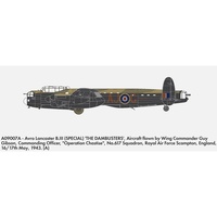 Airfix 1/72 Avro Lancaster B.III (Special) The Dambusters Following a short but intense period of training, the volunteer group of crack airmen who made up the new RAF No.617 Squadron took off from RAF Scampton on the night of 16th/17th May 1943, at the start of the most audacious bombing raid in history.Led by their enigmatic and inspirational commanding officer Guy Gibson, he is reputed to have said, 'This squadron will either make history, or it will be completely wiped out', but nevertheless, every man was determined to play their part in this historic raid. Nineteen 'Special' Lancaster's and their crews sent a message to the German nation that could not be disguised by their propaganda ministers. What's in the box? Plastic kit Instruction sheet Paint guide Decal Sheet