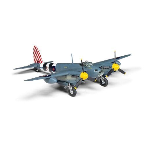 Airfix 1/72 De Havilland Mosquito PR.XVI Without a doubt, the Mosquito's greatest attribute was its speed and even though it was developed as a high-speed, unarmed bomber, the sheer fact it could outpace fighter aircraft of the day made it an attractive proposition to those in the military charged with obtaining photographic intelligence of potential enemy targets.It is interesting to note that the second Mosquito prototype aircraft to begin construction was a photo reconnaissance variant and indeed, the first Mosquito to be taken on charge by the RAF was a PR Mosquito, so vital was this work to the British war effort.The months prior to the D-Day landings saw the introduction of the upgraded Mosquito PR Mk.XVI variant, an aircraft which was the most effective photo reconnaissance aircraft in the skies at that time. Able to fly higher, faster and for longer, these latest reconnaissance Mosquitoes could go anywhere and see everything and the Germans hated them.  Specialist Luftwaffe units were established specifically to challenge Mosquito reconnaissance incursions, however, it wasn't until the introduction of rocket and jet-powered aircraft that they had much hope of success. Even then, Mosquito crews were well-versed in evading interception and continued to bring home their vital tactical imagery. What's in the box? Plastic kit Instruction sheet Paint guide Decal Sheet