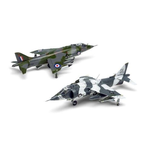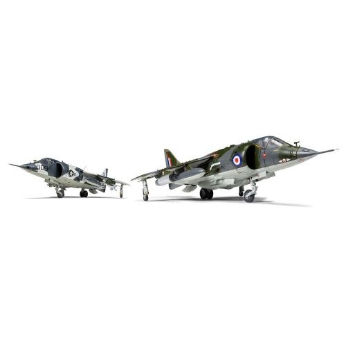 Airfix 1/72 Hawker Siddeley Harrier GR.1/AV-8A An aircraft that is undoubtedly one of the most significant in the history of aviation, the Hawker Siddeley Harrier GR.1 was developed from the Hawker P.1127 experimental aircraft produced to test the possibilities of V/STOL vectored thrust flight. These aircraft would successfully master the transition from hovering to forward flight and back to the hover, despite several of the development aircraft suffering accidents during testing.  The prospect of a viable V/STOL aircraft proved to be of great interest to both the British and US military, who funded further development of the aircraft. The new 'Jump Jet' was an instant hit with the British public, who marvelled at the ingenuity of their aviation industry, which was once again proving to be the envy of the world.As the consummate display performer, the Harrier was always a popular display item with Airshow crowds, with the two forming a bond which would last right through the Harrier's long service career. In the eyes of the British public, no Airshow was complete without a display from Britain's world-leading Harrier.Entering Royal Air Force service in April 1969, the operational flexibility offered by the Harrier GR.1 ensured the aircraft would never find itself too far away from potential conflict hotspots. Not confined to operating from military airfields, Harriers could be concealed in forest clearings or dispersed to sections of motorways, or even school playgrounds, but with the intention of keeping their location concealed from the enemy.  With many of these early Harriers deployed in West Germany, they would act as a significant deterrent against Eastern Bloc aggression, potentially lurking in many undisclosed locations, poised to strike against attacking Soviet armour at a moment's notice. What's in the box? Plastic kit Instruction sheet Paint guide Decal Sheet