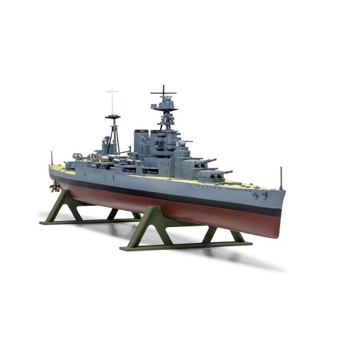 Airfix 1/600 HMS Hood The largest warship in the world when launched in 1918. She was the pride of the Royal Navy on sailing to intercept the Bismarck in May 1941. After making contact with the German battleship she, with HMS Prince of Wales opened fire. The Bismarck returned fire and with her 5th salvo hit the Hood a fatal blow and she sunk within two minutes. Only three crew from her total of 1,500 survived. What's in the box? Plastic kit Instruction sheet Paint guide Decal Sheet
