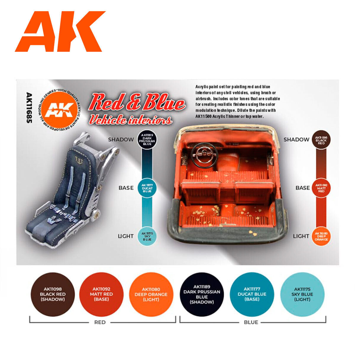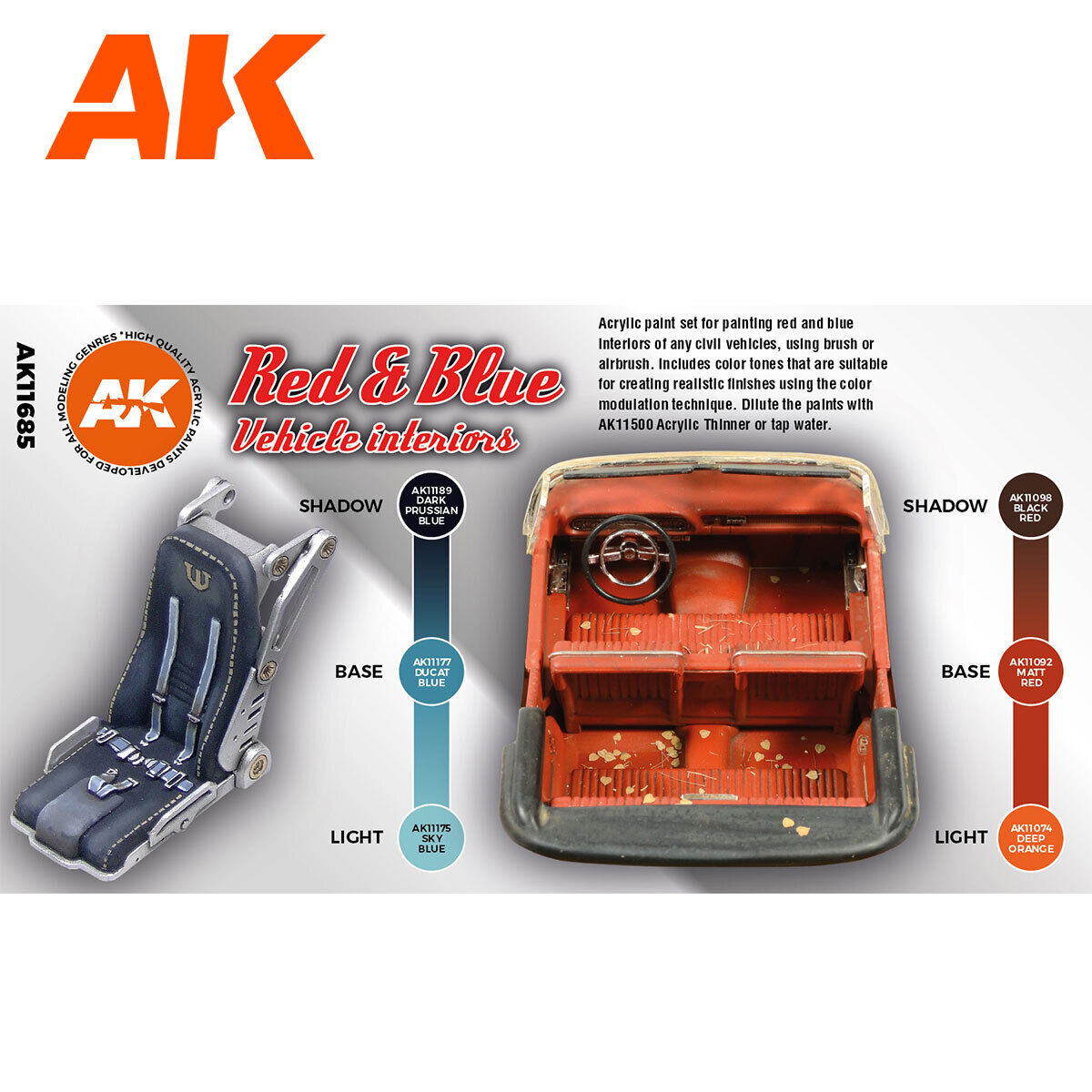 AK Interactive Civil Series: Red And Blue Interior Colors Acrylic Paint Set 3rd Generation