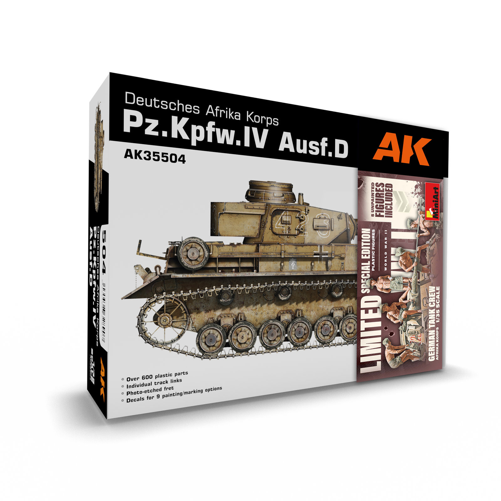 AK Interactive Pz.Kpfw.IV Ausf.D Afrika Korps + 5 Figures German Tank Crew Plastic Model Kit
