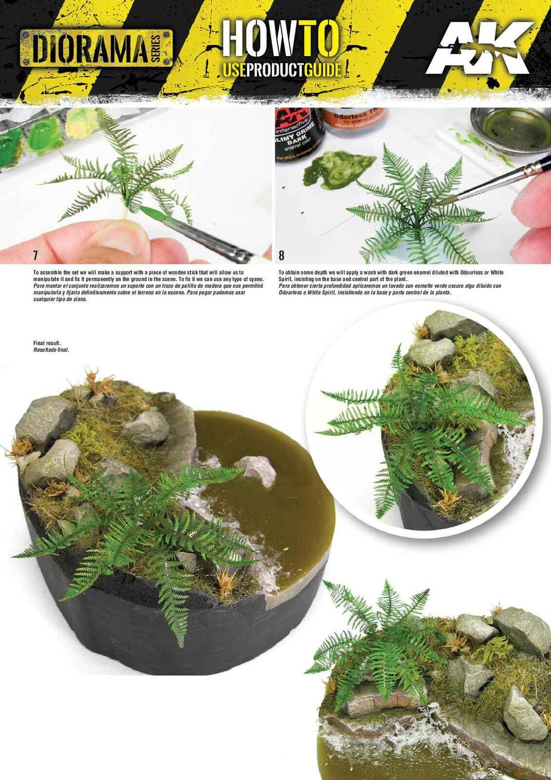 High quality CO2 laser-cut realistic plants. These are the most detailed plants available on the market. Their use brings a distinctive and ultra-realistic touch to your dioramas, scenes and vehicles. Can be easily fixed in place with tiny quantities of white glue, diluted white glue, or using our original AK118 Gravel & Sand Fixer.