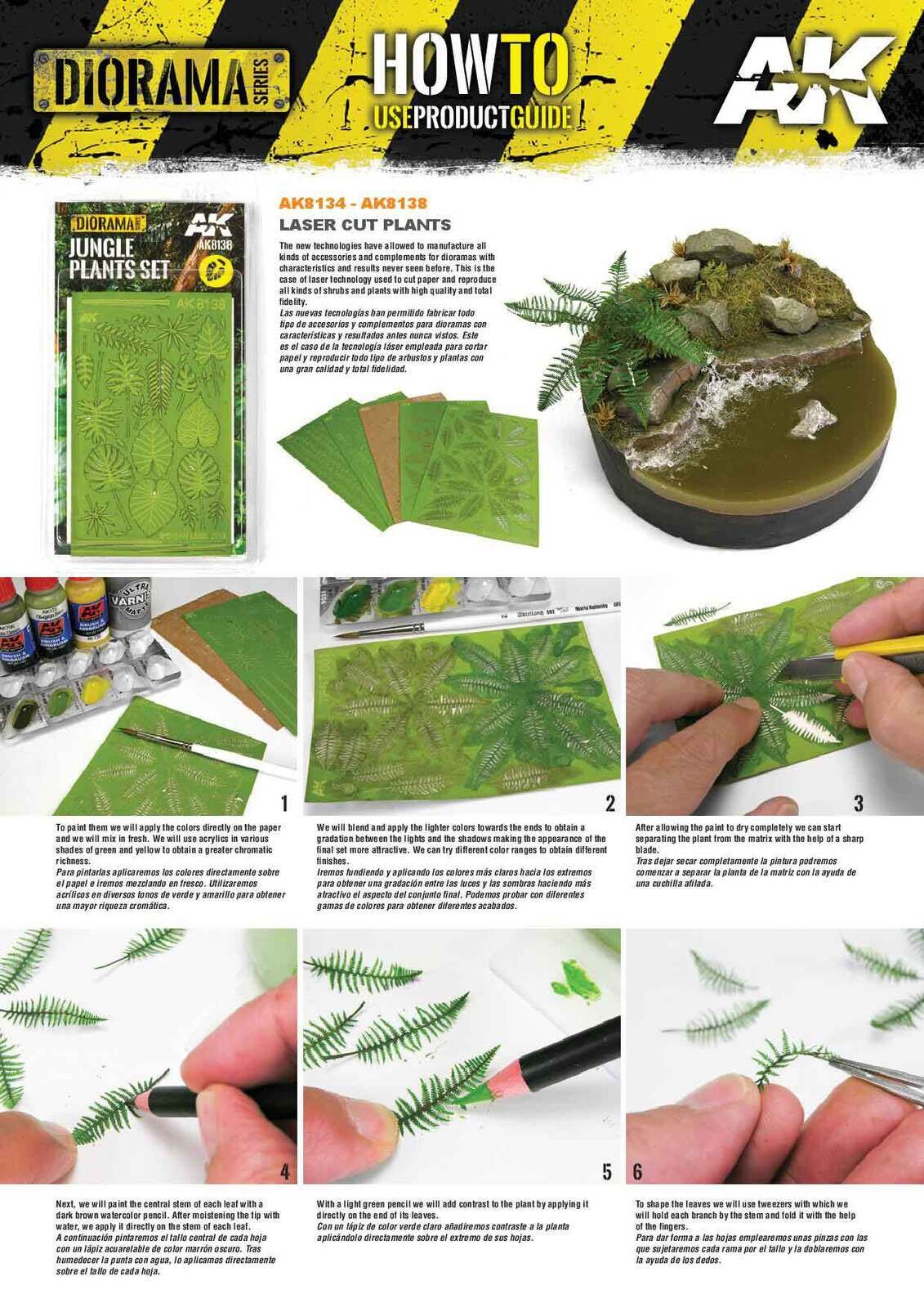 High quality CO2 laser-cut realistic plants. These are the most detailed plants available on the market. Their use brings a distinctive and ultra-realistic touch to your dioramas, scenes and vehicles. Can be easily fixed in place with tiny quantities of white glue, diluted white glue, or using our original AK118 Gravel & Sand Fixer.