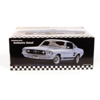 FEATURE PACKED: The 1967 Mustang GT Fastback is a historical muscle car that stands alone! Fully paintable, it features authentically detailed water-slide decals. Build it up right with a Ford 289 V8 engine, Firestone Wide Oval tires, chrome wheels, optional Cobra valve covers, bucket seats, and more. Wrapped up nicely in retro-styled packaging!