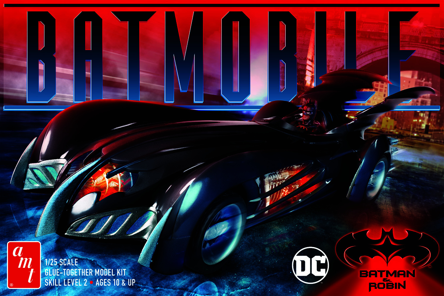 AWESOME MOVIE CAR! AMT presents the Batmobile featured in the 1997 classic, Batman & Robin. This 1/25 scale kit makes a great project for any experienced modeler, or comic fan interested in starting the hobby. Add it to your collection today!