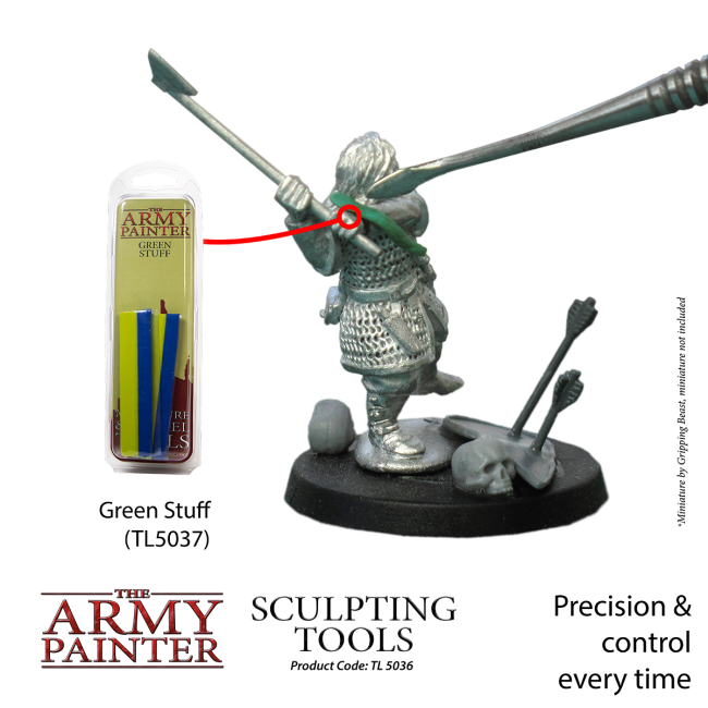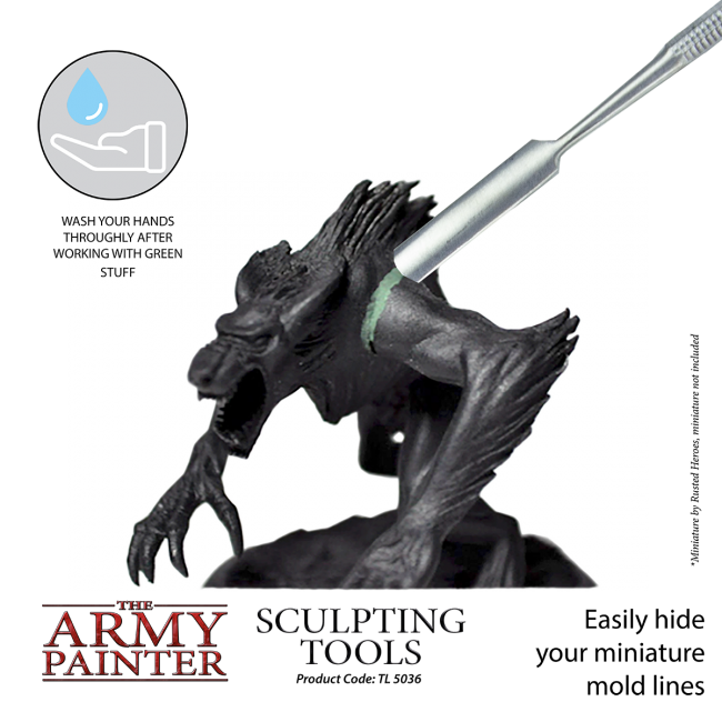 The original sculpting tools are used in conjunction with Green Stuff and offers the modeller a range of different heads with each their function.