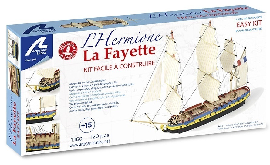 Two centuries later, in 1997, the building of faithful replica of Hermione, which in 2015 has completed the same journey as the original ship. Artesanía Latina has the official license of the Hermione La Fayette Association. Join us on this new Hermione journey!