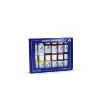 The water-based paints set for Vessel in line Santa Ana consists of 12 jars of different paints, each one with 20 ml of product. In this sense, it includes the following colors in paints: Off-White, Off-Black, Bright Red, Red FS11136, Navy Blue, Ice Yellow, Chrome Yellow, Buff, Cocoa Brown, Burnt Umber and Gold.