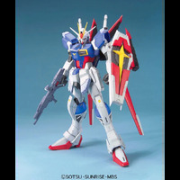 Bandai The ZAFT Mobile Suit that destroyed Kira Yamato's Freedom Gundam in "Gundam Seed Destiny" now gets a Master Grade kit release! Sharply molded in colour, the transformable Impulse Gundam is formed by three main parts: Chest Flyer, Core Splendor, and Leg Flyer. Core Splendor's cockpit can be opened to insert an in-scale sitting pilot figure. In addition, landing gear are provided for both the Chest Flyer and Leg Flyer as an original gimmick that's never seen in the anime! The Force Silhouette pack carried by the Silhouette Flyer can be attached to the back of the Mobile Suit to complete Force Impulse Gundam. Weapons include an anti-ship laser sword, a beam rifle, an openable shield, and two beam sabers. Unpainted 1/100-scale figures of Shinn Asuka and Lunamaria Hawke (both molded in white) are packed in the set along with foil stickers, dry-transfer decals, and marking stickers to add detail to the completed model.
