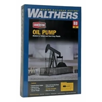 Seen alone or in groups wherever oil is found, Walthers Cornerstone HO Scale Walking Beam-Horse Head Oil Pump kit is a great way to model a part of this vital industry anywhere on your layout. Finding oil is hard work - and so is getting it out of the ground. If the oil is thin enough and there's enough underground pressure, it may flow into the well on its own. This may continue for a few hours or a few years, but in time, the pressure drops. Today, nearly 95% of all US oil wells require pumps to stay in production and one of the most common is the walking beam or horse head. The Walking Beam Oil Pump typical of North American designs in use since the 1920s and includes a detailed stationary diesel power plant, walking beam, rear crank and counterweight, along with the odd-shaped "horse head" front counterweight that gives the machines their nickname Designed from the ground up to be a working model, the kit includes a hidden drive.