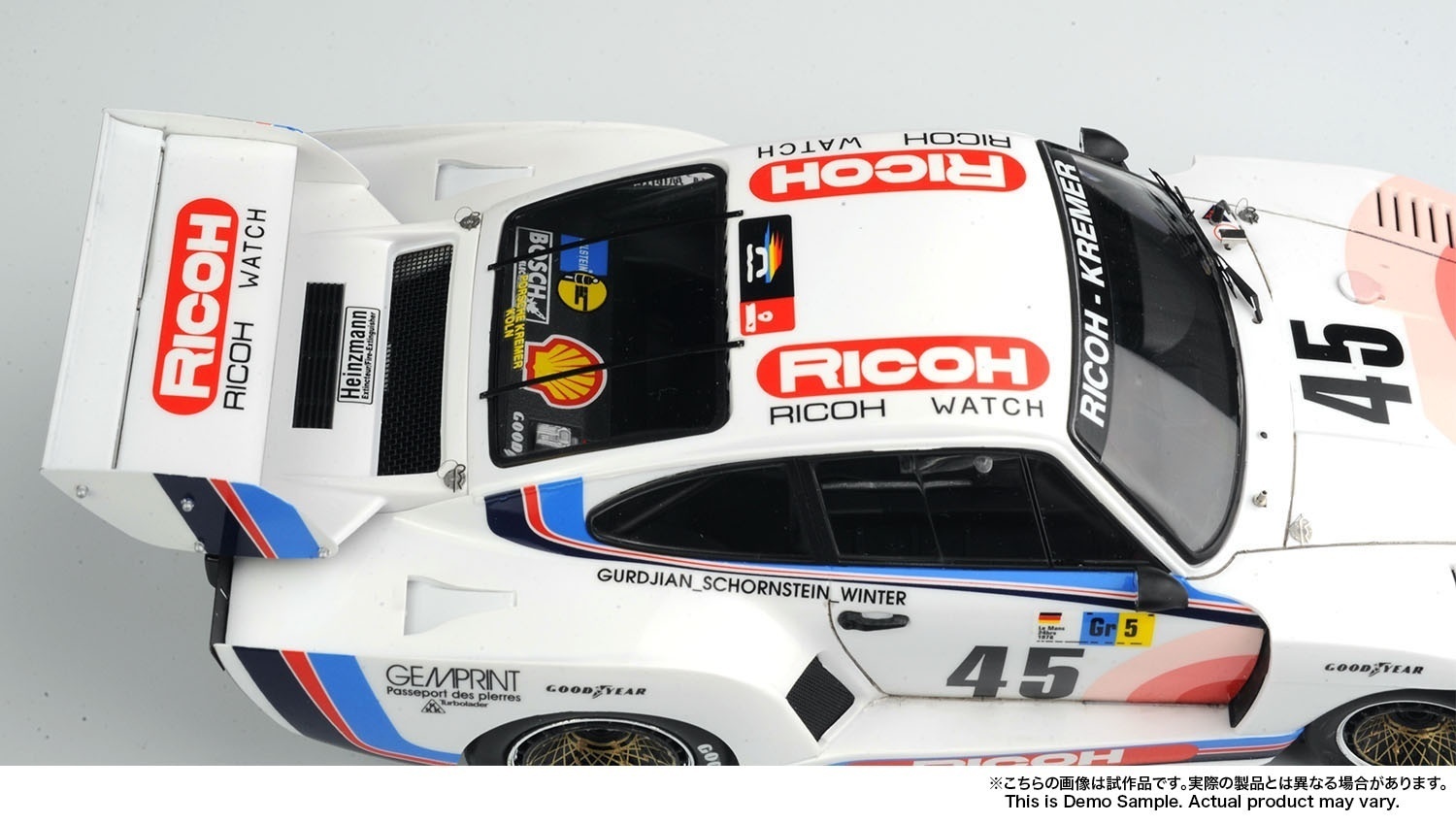 The marking is a large decal that reproduces the marking of one of the Kremer Racing cars that participated in the 1978 Le Mans 24-hour race, car number 45, and the machine that ran sponsored by Ricoh.