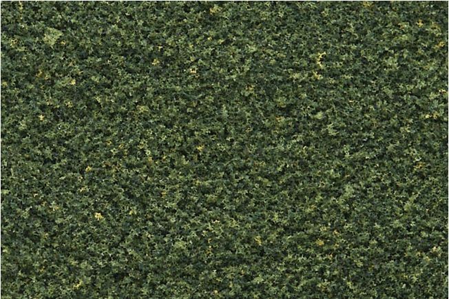 Use Green Blend Blended Turf as a lush green base covering over pigmented terrain. It is colorfast and blends naturally with other foliage. Use for any scale.