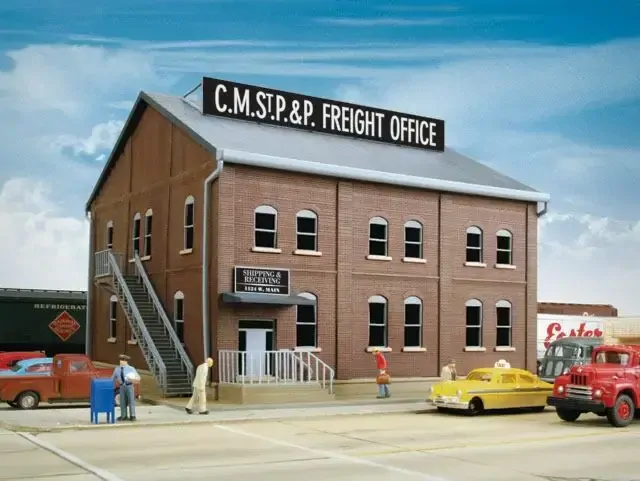 The Walthers Cornerstone Brick Freight Office is where businesses and small industries that didn't have their own sidings arranged for rail service. Many off-line shippers relied on the railroad to move their goods from trains to trucks for delivery to stores and warehouses. The freight office served as the "brains" of the operation, housing an army of clerks who kept track of paperwork and billing. This kit is based on structure that stood on Fowler Street, just south of Milwaukee's hometown depot. It's companion freight housenext door handled cargo transfers between boxcars and delivery trucks. Their classic American design is similar to buildings in many other cities making both models ideal for use in any city terminal. On your layout they can also be used as part of a larger industry or in a railroad yard to handle company materials. Authentic Milwaukee Road signs are included in the Freight Office kit, but you can easily add your own signs for other railroads or shippers. The easy-to-build Brick Freight Office has detailed plastic parts molded in appropriate colors and comes with illustrated instructions. The finished structure as shown measures: 8-13/16 x 9 x 6-1/8" 22.4 x 22.9 15.6cm.