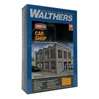 The prototypes for railroad buildings like the Walthers Cornerstone HO Scale Car Shop evolved into long, specialized structures dedicated to freight or passenger car repairs. Several tracks ran the entire length of the building so cars could be moved quickly between workstations handling trucks, brakes, interiors and other appliances. Perfect for servicing any kind of equipment, this kit features a modular design so several can be combined to build a larger building, and it's a natural for modeling all kinds of heavy industries.