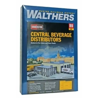 The Walthers Cornerstone HO Scale Central Beverage Distributors with Office Annex kit is based on contemporary rail-served warehouses. The warehouse features corrugated construction on a block foundation and the office annex is a brick structure with a canopied main entrance. The warehouse has molded cut lines inside for easy customizing to fit your space. Use this kit in your industrial park as a destination for boxcars or as part of a larger complex.