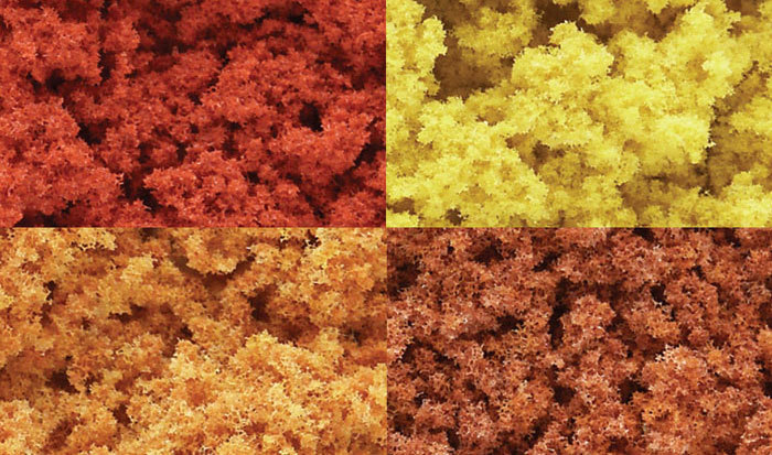 Model medium to high ground covers, create variation in trees, shrubs and bushes, and landscape hillsides. Use for all scales. Colorfast and blends naturally with other foliage.