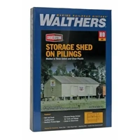 The Walthers Cornerstone Storage Shed on Pilings provides more storage for the local grain elevators, feed mills or any business. This versatile small warehouse is typical of wooden buildings found in rural areas, it can also be used alongside small industries and other businesses having a need for storage of materials unloaded from trucks or boxcars. The Storage Shed on Pilings features detailed plastic parts to capture the look of wood construction, a rooftop vent and a set of decal signs.
