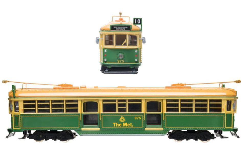 This model depicts the Green Rattler tram 'No. 975' The Met .