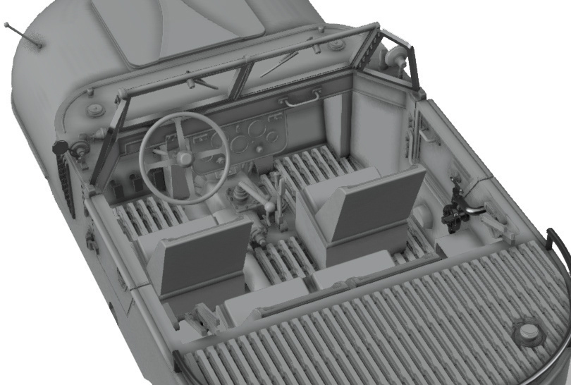 The military version was built with an enlarged interior.According to the ideas of the Heereswaffenamt (HWA) or German Army Weapons Agency, up to 16 soldiers should then be transported with the Trippel SG 6/38.