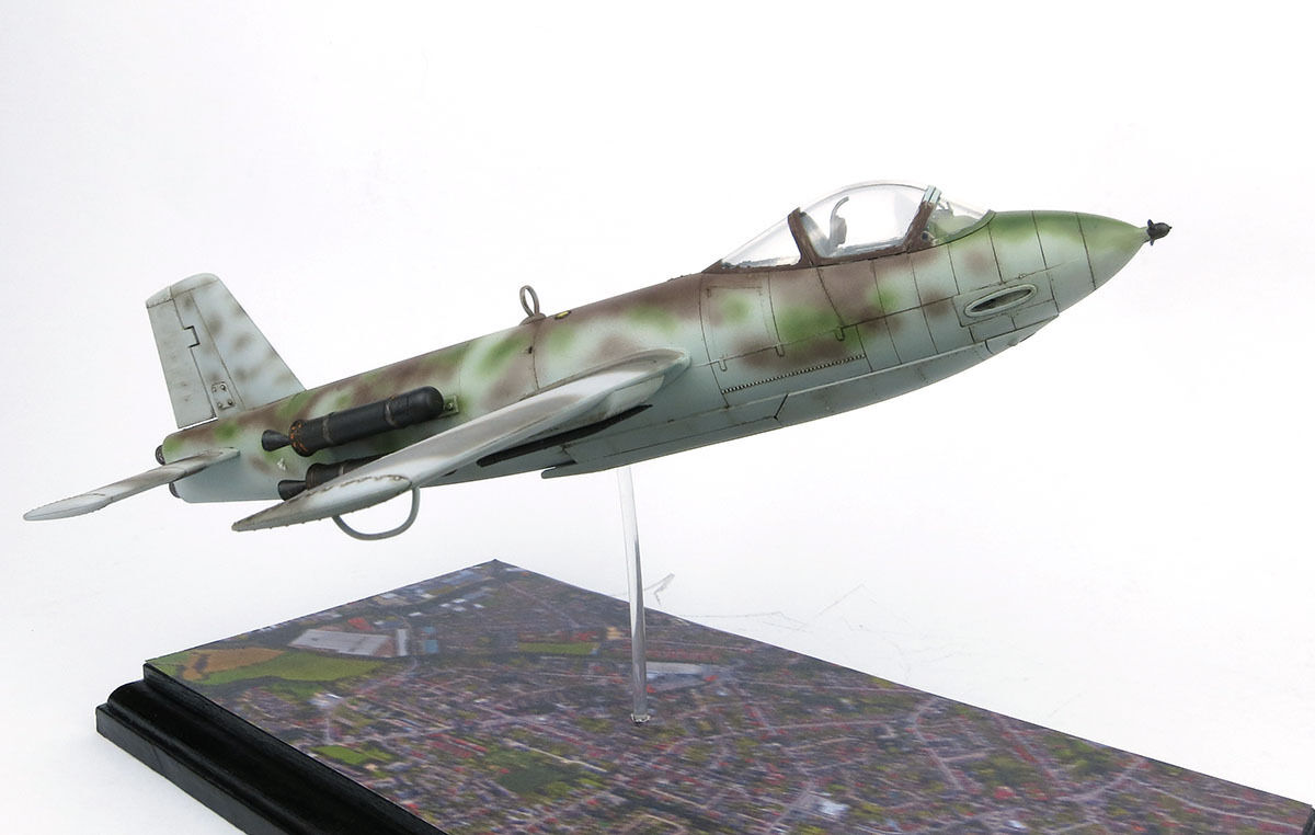 The type featured 2 MG 151 mm canons on each side of the cockpit (similar to the He162 Salamander). While the initial design was supposed to use a single Argus As 014 pulse-jet engine, it was quickly found to be underpowered in that config­uration. Various alternative propulsion options were explored, including a dual Argus As 014 configuration, a Walther 509C rocket motor, like that carried by the Me263 experimental fight­er, and a single Jumo 226 pulse-jet.