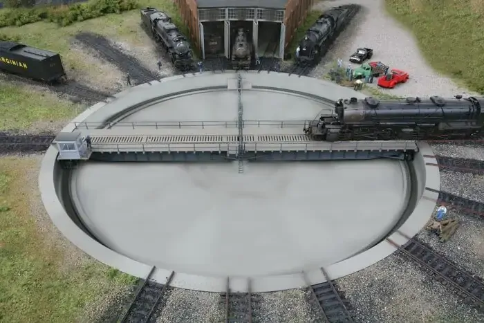 Sure to be the focal point of any HO Scale engine terminal, this Walthers Cornerstone 130' Motorized Turntable is where steam locomotives, and later diesels, were turned around at the end of their runs. Normally serving a roundhouse, most were also placed for access to backshop facilities and servicing tracks. This 130' turntable was about as big as they come - large enough to turn a 4-8-8-4 Big Boy and other large, modern engines. On your layout use the 130' Motorized Turntable as the heart of your servicing facility.