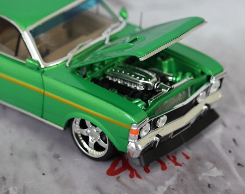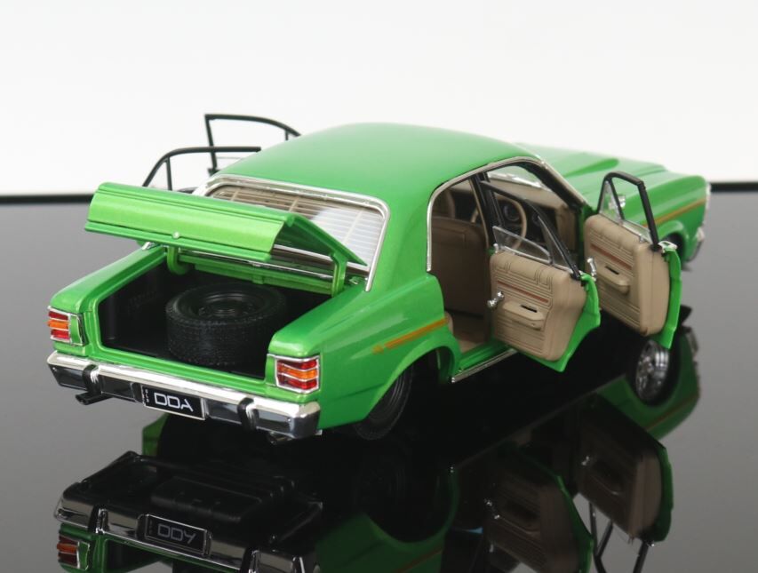 DDA - 1/24 Green 1969 XW GS Ford Burnout Car Detailed Opening Doors, Bonnet and Boot