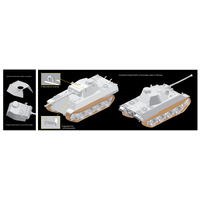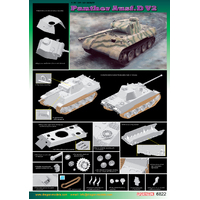 Dragon is proud to launch its first 1/35 scale kit of the prototypical Panther V2 created by MAN in the autumn of 1942. The kit is logically based on Dragon...s existing Panther family kits, but there are many new parts incorporated into it to reflect the characteristics of this early prototype. These differences include the turret (with curved sides), upper hull, engine deck and road wheels (with 18 rim bolts instead of the later 16). Another example of its differences was that there were no interlocking armor plates on the hull. This Versuchs-Serie FgSt.Nr.2. tank has been intricately replicated in 1/35 scale, drawing upon Dragon...s technical and technological expertise. This Panther V2 kit is thus a welcome addition to the lineage of the Panther family.
