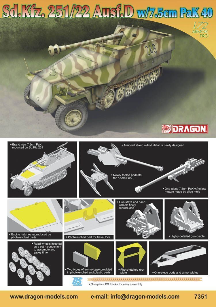 Dragon 1/72 Sd.Kfz.251/22 Ausf.D w/7.5cm PaK 40 Plastic Model Kit [7351]