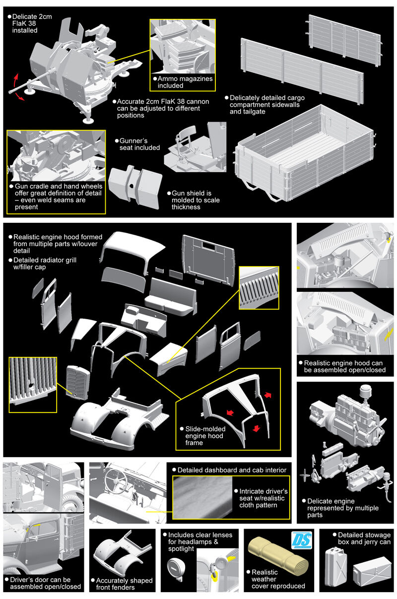 Dragon - 6828 1/35 GERMAN 3t 4X2 CARGO TRUCK w/2cm FlaK 38 (SMART KIT) (2 IN 1)