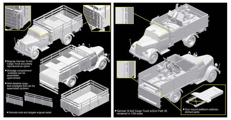 Dragon 1/35 GERMAN 3t 4X2 CARGO TRUCK w/2cm FlaK 38 (SMART KIT) (2 IN 1) [6828]