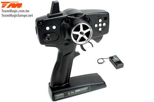 Become a Pro Drift pilot with the Team Magic E4D-MF! The Team Magic E4D-MF design offers a perfect weight balance for better control, is equipped with special CVD drive shafts in the front to increase the steering rate and also offers countersteer option in the transmission center to adjust individual RPM rating in front or at the rear. The lower and upper deck is made from durable silver carbon fiber material and the car comes fully equipped with ball bearings for free movement. Supplied fully built this car includes a wheel radio fully installed. You will need to add a battery and charger to complete this setup. We recommend 2s Lipo batteries or 7.2v Ni-MH batteries. Talk to our friendly staff for a custom setup. E4D-MF RTR Features: -Full Ball Bearings -3 Belts Transmission -2.5mm Silver Eco Graphite Chassis -2.5mm Silver Eco Graphite Upper Deck -2.5mm Silver Eco Graphite Shock Towers -Fully Adjustable Turnbuckles -Quick Release Battery Holder -H.A.R.D. 2.4gHz Radio System -H.A.R.D. Electronic Speed Controller -H.A.R.D. X3 Motor -Finished Drift Car Body with smart Matt Finish E4D-MF RTR Main Specs: -Width: 186~193mm adjustable -Wheelbase: 256~260mm adjustable -Transmission: Front Oneway / Rear Spool -Countersteer: 64% (Rear 0.8 / Front 2.06