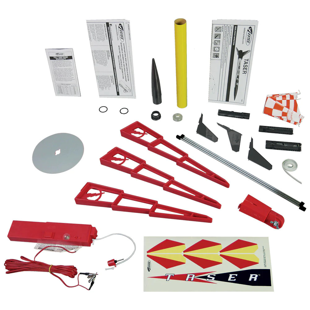 The Taser is a stunning rocket that’s capable of subduing anything out there that’s dangerous! The Taser Launch Set from Estes is an exciting, radically designed high altitude rocket launch set that is easy to build. The rocket kit features a brightly colored one piece body tube, molded plastic fin set and bullet shaped nose cone. Simply glue a few rocket pieces together, apply the colorful self-stick decals and in less than an hour you’ll be ready for the launch pad!