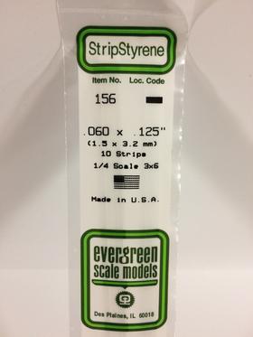 Evergreen - Styrene Strip White .060 X .125 X 14 - #156