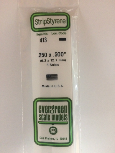 Evergreen White Polystyrene Strip 0.250 x 0.500 x 24" / 6.4mm x 12.7mm x 61cm (3)