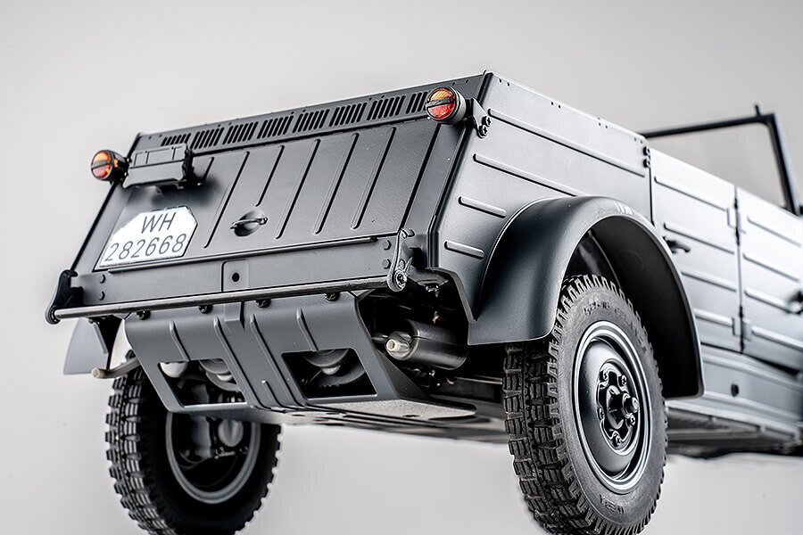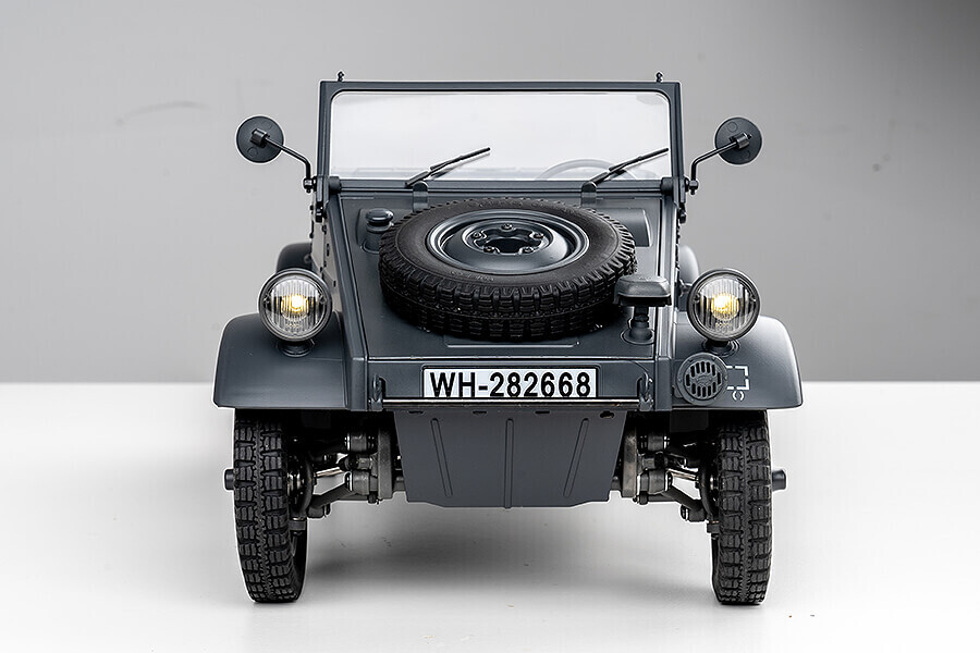One of Germay's iconic vehicle from World War 2, the Kubelwagen was utilised extensively as a reconnaisance vehicle, staff car and small transport unit. FMS has concentrated it's efforts on the extremely well detailed body of this fully remote controlled car including accurate and small details. FEATURES Four-wheel independent suspension Rear portal axles Front and rear axle planetary gear differentials Perfect restoration of Air-cooled horizontally opposed four-cylinder engine 130 motor in the cylinder Cooling fan driven by belt The third channel for the two-speed transmission controls The fourth channel for switch between 4WD-RWD Mode Retractable Windscreen Servo Operated Synchronized Steering Wheel and Front Wheels Angle-adjustable real rearview mirror Four openable doors and mechanical locks included Soft fabric seats & retractable rear seats Spacious Luggage compartment space & Openable hatch Openable Engine hatch Excellent light function Realistic 5.25-16 tires, wheels and spare tire Front and rear metal bumpers Perfect for 1/12 figures 30 stainless steel ball bearings Full metal gears Full metal drive shaft World War II German gray scheme Exquisite pad-printed body logo Four-channel 2.4Ghz digital proportional remote control system Receiver electronic governor two in one SPECIFICATIONS Radio Control: 118 x 73 x 145mm, 131g (Battery not Included) Model Vehicle: 317 x 135 x 129mm, 635g(Battery not Included) Tire: D:58mm , W:12mm Wheel Base: 202mm Ground Clearance: 30mm Approach Angle: 60° Departure Angle: 40° Driving Speed: 8km/h Max Remote Distance: 60m Play Time: 20 minute NEEDED TO COMPLETE AAA Batteries for Radio WHAT'S INCLUDED 1 x 1:12 TYPE82 KUBELWAGEN RTR 1 x 2.4GHz Radio 1 x 2-in-1 Receiver / ESC (installed) 1 x 130 Brushed Motor (installed) 3 x 9g Plastic Digital Servo (installed) 1 x 7.4V 380 mAh Battery 1 x USB Battery Charger 1 x Hex Wrench Socket 1 x Product Manual 1 x Screw Driver