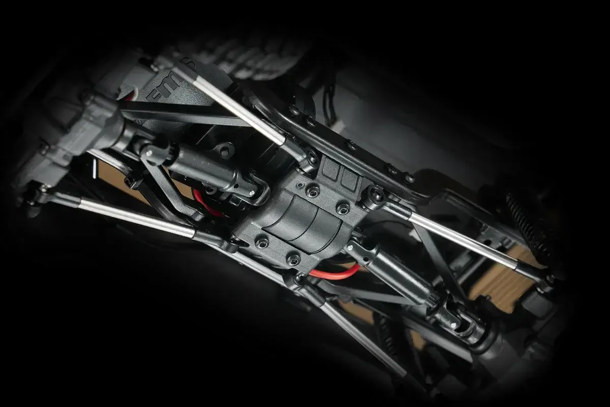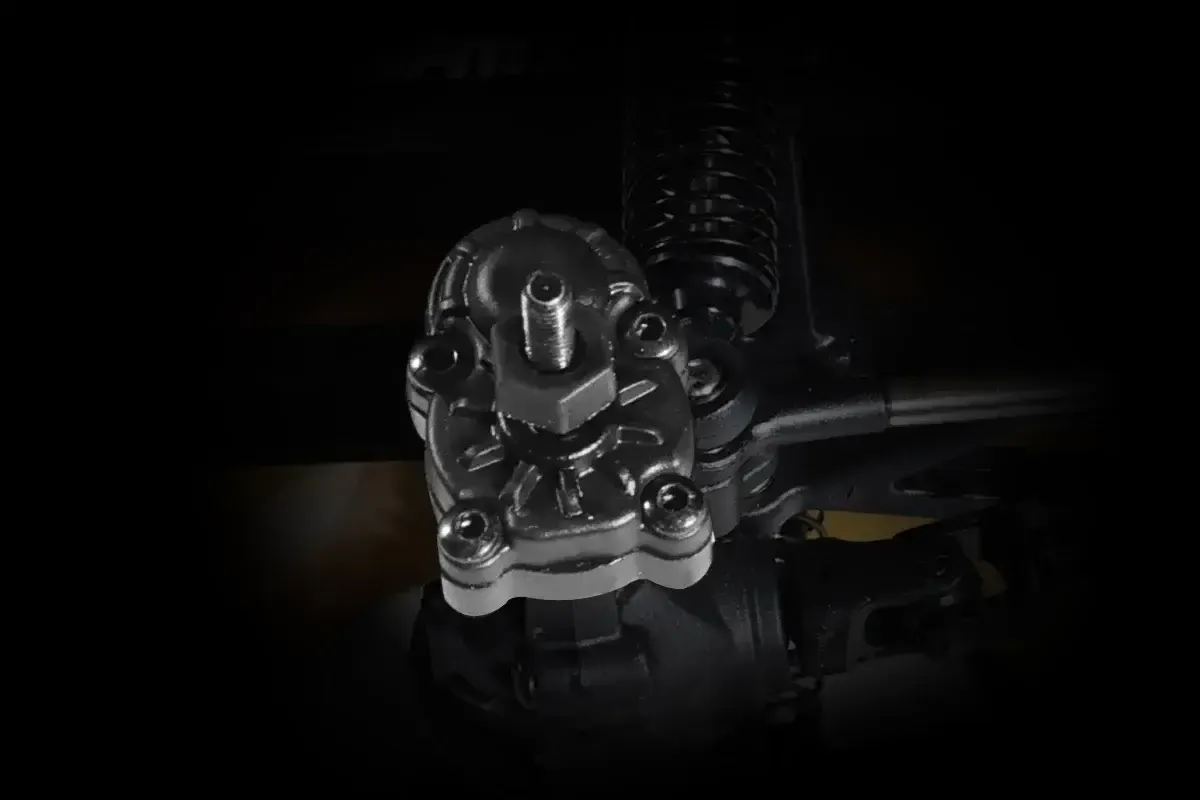 The rugged chassis construction of the FCX18-LC80 provides excellent strength and durability. It can withstand strong impacts and heavy loads, and the optimized design of the chassis safeguards the stability and reliability of the vehicle, allowing the car to stay steady in all kinds of terrain and conditions, enjoy the challenge, and enjoy an unparalleled off-road experience. What's more The new FCX18 series is equipped with precisely tuned metal hydraulic shock absorbers, which bring more stable shock absorption and buffering capabilities than the FCX24 series, and restore the excellent driving posture of the real car to a higher degree.