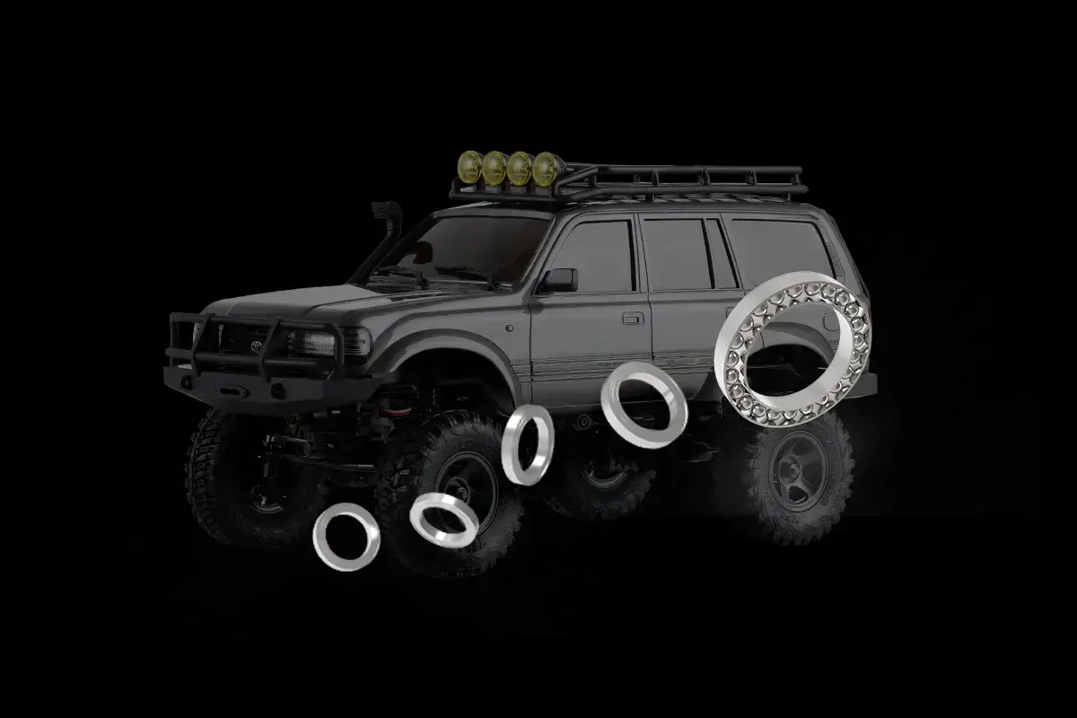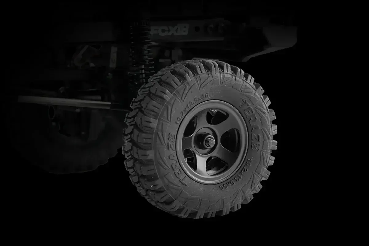 FCX18 LC80 upgrade is that the tire softness has been significantly improved, and a softer 30-degree rubber & sponge inner tube material has been selected, which improves the climbing performance by 30% and brings more excellent grip.. Whether it is climbing difficult and rugged terrain, or racing on the road, it can steadfastly grasp every inch of the ground.In addition, in order to bring a more lasting fun experience, we also provide players with a spare tire, which is both tough and wild in appearance and practical, and has the same excellent grip.