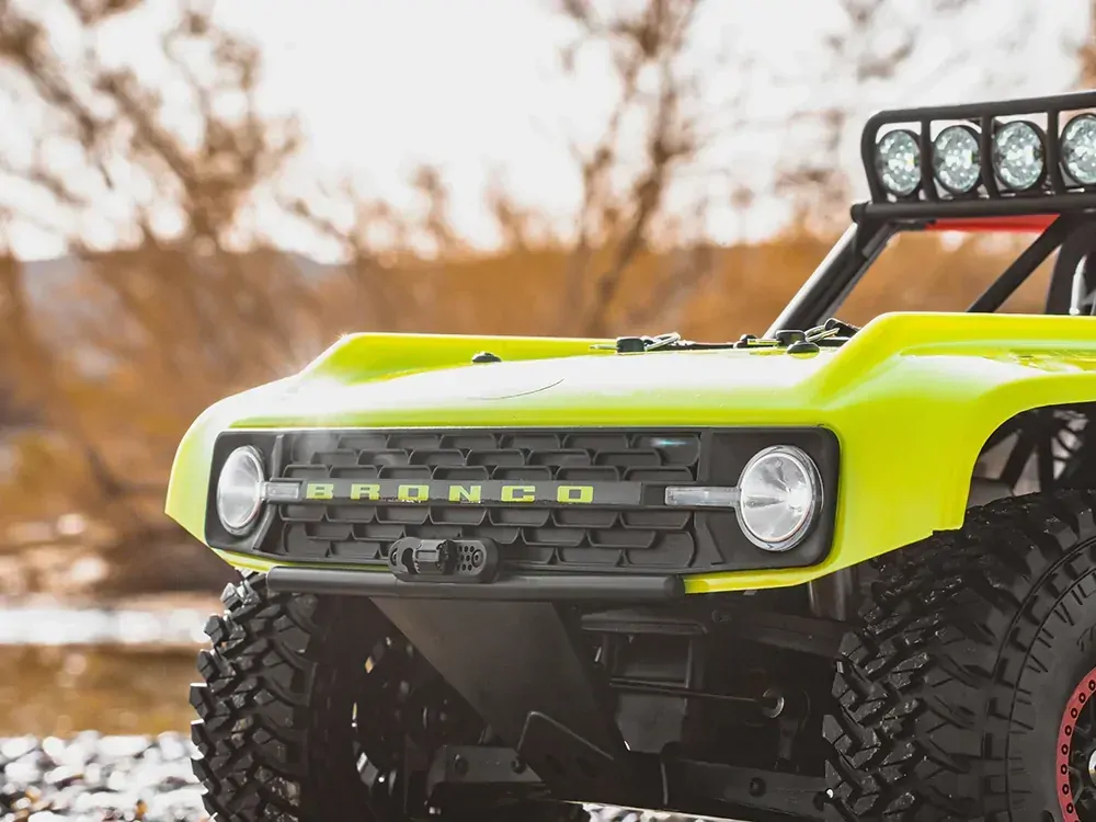Introducing the Ford Bronco RTR EB, a 1/7 scale short course truck officially licensed by Ford and RTR Vehicles. Inspired by the full-size Bronco that dominates Ultra4 racing, this RC truck captures the spirit of off-road racing with bold design and rugged authenticity. From desert runs to rocky trails, it channels the full-size thrill into a compact, high-performance RC car — faithfully capturing the spirit of the original and inviting you to explore the wild, one trail at a time.