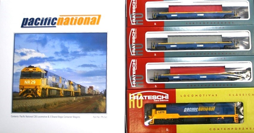 Frateschi - Pacific National' L Class Locomotive & 3 Pacific National Double Stack Container Wagons