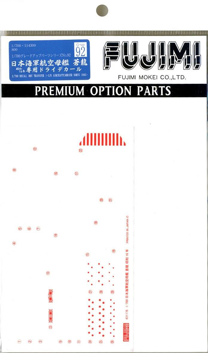 Fujimi - 1/700 Dry Decal for IJN Aircraft Carrier Soryu 1941 (G-up No92) Plastic Model Kit