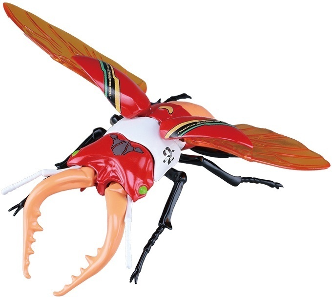 Fujimi's realistic Stag Beetle model kit returns in colors like those of Evangelion Unit 02! Its main parts like the horns, chest and legs are movable so it can be displayed in various poses; it can be displayed in flight by replacing the clear-molded inner wing parts. It assembles easily, too, with no glue required! Marking stickers for N-01 and N-02 are included as well