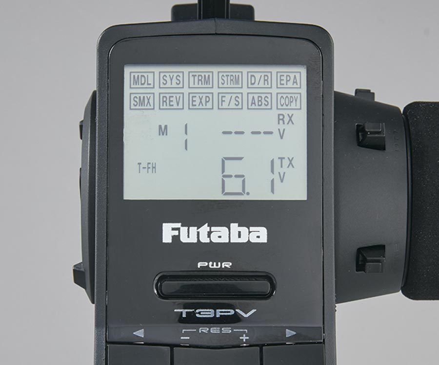 Hold the 3PV in your hand, and instantly feel how lightweight it is. Access the programming menu on the easy-to-read screen, and see how sophisticated it is. Experience the 3PV's super-fast response rate, and realize that you're in command of the system that can make a real difference on race day. You also get FHSS, S-FHSS and T-FHSS protocols, making it one of R/C's most versatile surface system. The 3PV comes with an R314SB telemetry receiver for keeping you apprised of receiver voltage,The same receiver that comes with the 4PX FHSS/S-FHSS/T-FHSS* protocols 10-model memory Model Reset Model Name (4-Character) Low Battery Alarm Link Mode (T-FHSS only) DT3 Selection SW1 Steering Trim Throttle Trim Channel 4 Trim Sub Trim Steering Dual Rates Steering End Point Adjustment Throttle End Point Adjustment Channel 3 End Point Adjustment Channel 4 End Point Adjustment 4WS/Brake Mixing Steering Servo Reversing Throttle Servo Reversing Channel 3 Servo Reversing Channel 4 Servo Reversing Steering Exponential Throttle Exponential Throttle Fail Safe ABS Function Model Data Copy Auto Power-Off after 10 minutes