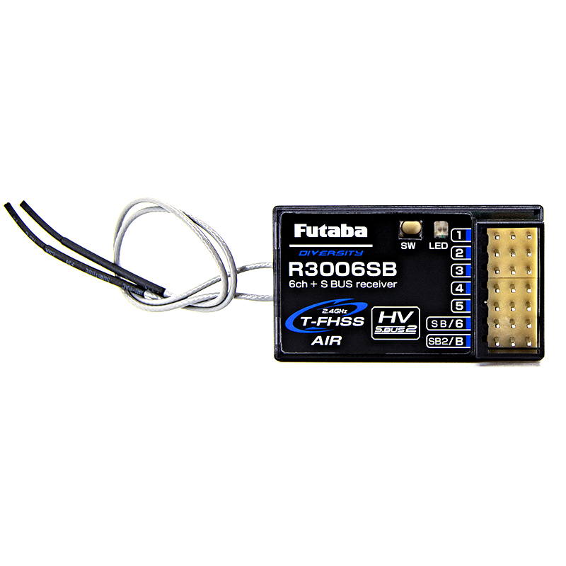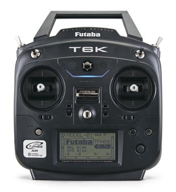 Futaba 6K Transmitter - Mode 2 8-Channel Digital Proportional RC System The Futaba 6K is an 8-Channel 2.4GHz Computer Radio System now updated to version 2, that offers 8 channels of control! The T6K radio also now includes a rechargeable battery and charger for added convenience and to keep you in the air longer. To get the most radio for your money, check out the new 6K — an easy-to-program flight system with versatile functions that include telemetry, S.Bus/S.Bus2 compatibility and 30 model memory. With Version 2 updates, it's now a better value than ever. The NEW 6K is an 8-channel system with additional telemetry functions, expanded multicopter flight modes and much more. Channels 7/8 are used through the R3006SB receiver's S.Bus/S.Bus2 ports Allow for expansions or adding accessories Can be assigned to any of the four switches or VR dial Are included in Sub Trims, End Points, Reverse, Failsafe, Servo Monitor and Trainer Expanded Flight Modes (Fly Mod) in multicopter programming Priority — toggle through five different values assigned to flight modes on an assigned channel Matrix — up to nine combinations using two, 3-position switches for controlling gimbals Vibration alerts with timer functions and Throttle Integrate SBS-01C current sensor and SBS-01V voltage sensor compatible System features: Airplane, Helicopter, Glider and Multicopter programming S-FHSS/T-FHSS selectable Telemetry system (T-FHSS) with data speech (via earphones) function for monitoring receiver battery voltage, external voltage, temperature, RPM, altitude and variometer, current, capacity and voltage Built-in antenna (Full Range) S.Bus/S.Bus2 servo setting functions programmable through the transmitter Preset vibration alarms 30 model memory 8-character model/user naming Programmable mixes (3-normal, 1-curve) for airplanes, helicopters, gliders and multi-rotors Digital trims with variable step settings Adjustable stick length and tension Changeable switch/VR position and AUX channel function Throttle position warning Backlit 128x64 DOT LCD screen with adjustable display contrast Software updateable through the CIU-2 or CIU-3 interface units Screen Lock Earphone/S.Bus/Trainer jacks Assignable switches (three 3-position, one 2-position) Range Check Program navigation bay with jog dial, +/- pads and end pad Data reset Model copy Selectable model type Fail Safe End Points Trim/Trim Resets/Trim Steps Sub Trim Servo Reversing Parameter functions Servo monitor/Test Wireless model data transfer (to other T6K transmitters) Timer-System and Model (Up/Down/Down-Stop/THR Integrate) w/Vibration Alert Trainer system Power Saver The included R3006SB receiver has six standard PWM ports plus S.Bus and S.Bus2 ports. You can use S.Bus as the main link to your servos or a combination of the ports. The S.Bus2 port allows bi-directional communication with T-FHSS Futaba air transmitters and the use of a wide array of telemetry sensors.