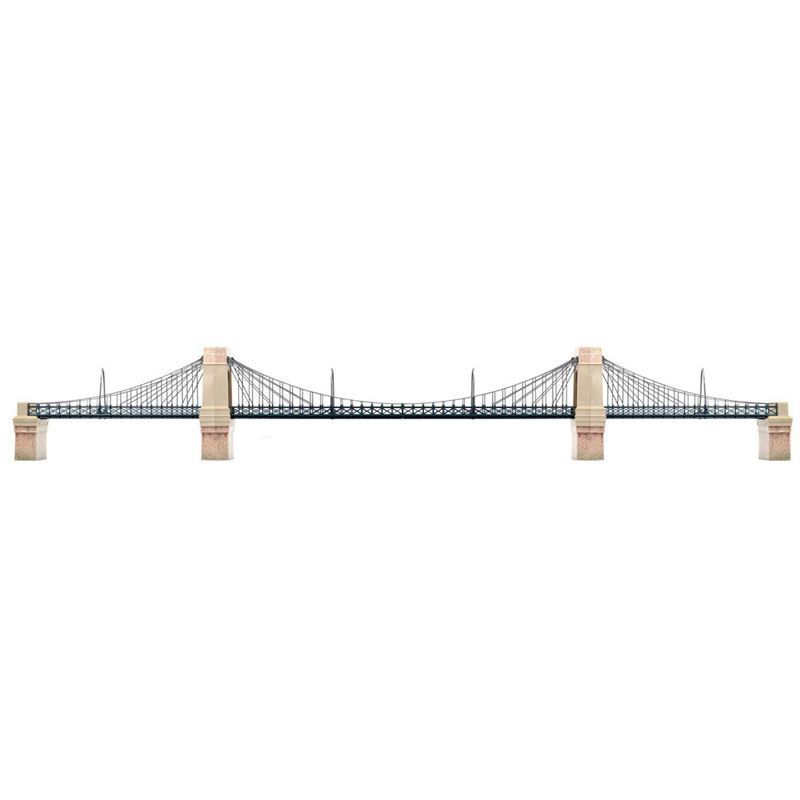 Whether you have a layout of countryside hills or a river running through the city, the grand suspension bridge kit is a guaranteed must-have. The painted brick detailing and railings make this bridge not only a fantastic layout addition but also a gift for the train collector in your life! This bridge has clip-together assembly with self-adhesive brick finish. No tools or glue are required. Length: 1372mm, Height (level to level): 80mm.